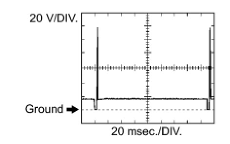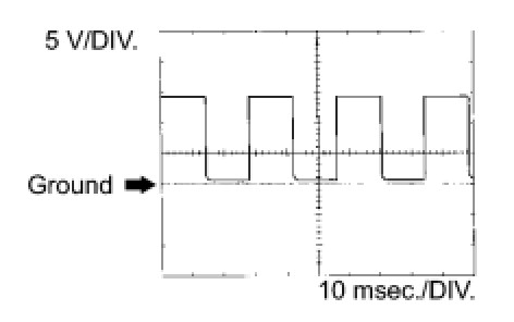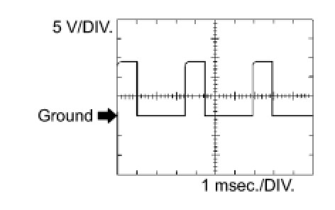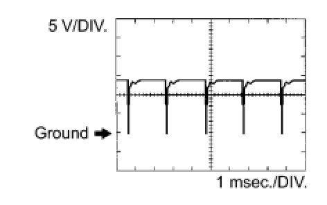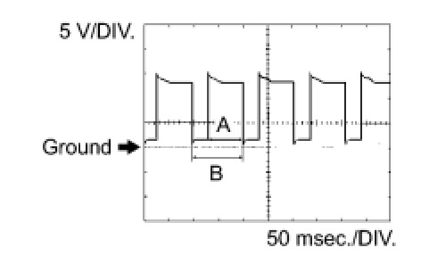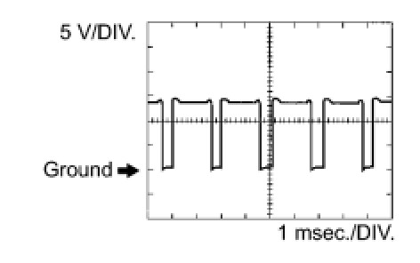 HINT: In cases where the purge VSV can be used to purge the EVAP, the waveform will not be displayed as shown in the illustration. In the Data List, the item Purge VSV shows the duty ratio of voltage flowing to the purge valve.
