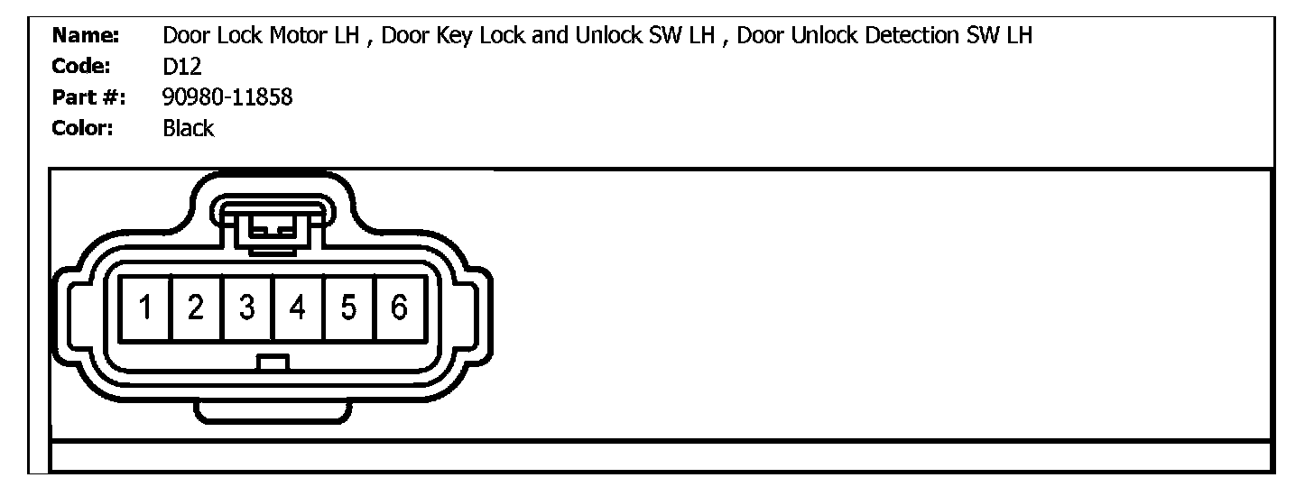 D12 (Door Lock Motor LH, Door Key Lock And Unlock SW LH, Door Unlock Detection SW LH):