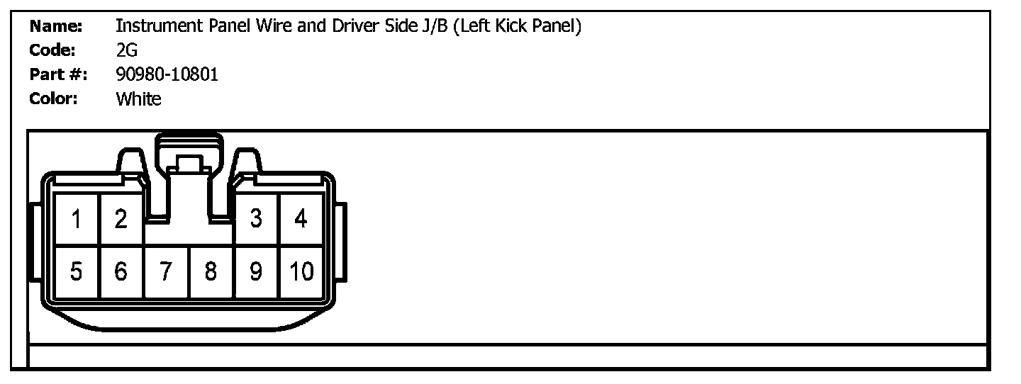 2G (Instrument Panel Wire And Driver Side J/B (Left Kick Panel)):