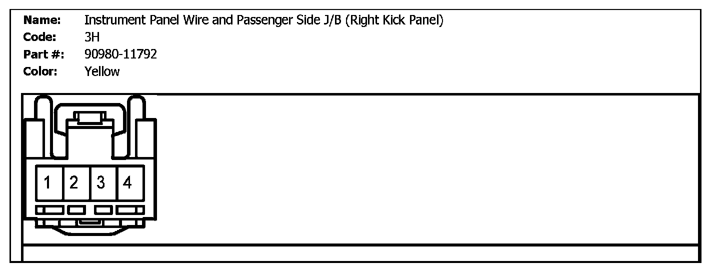 3H (Instrument Panel Wire And Passenger Side J/B (Right Kick Panel)):