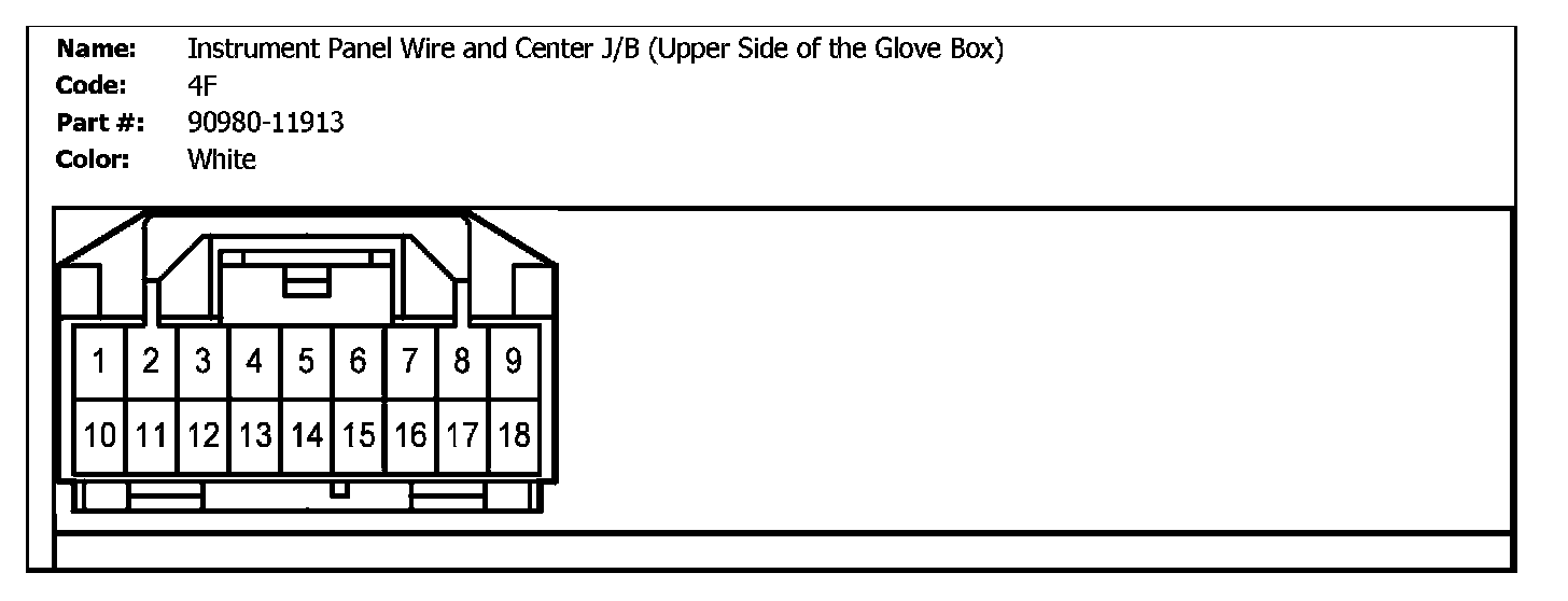 4F (Instrument Panel Wire And Center J/B (Upper Side Of The Glove Box)):