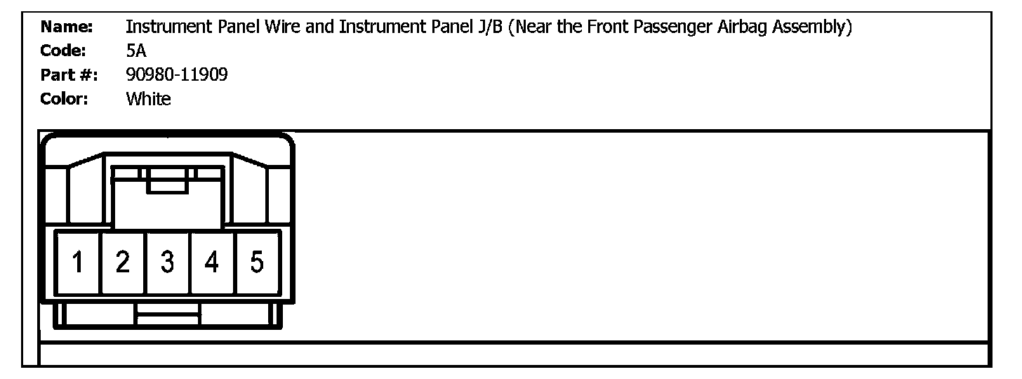 5A (Instrument Panel Wire And Instrument Panel J/B (Near The Front Passenger Airbag Assembly)):