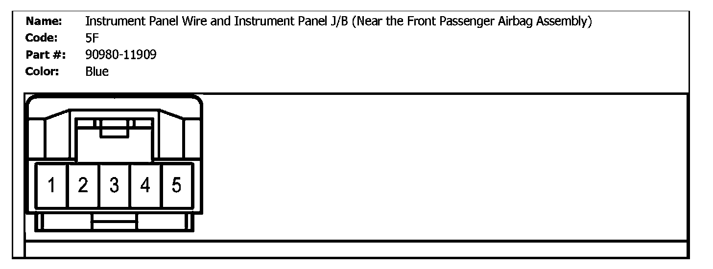 5F (Instrument Panel Wire And Instrument Panel J/B (Near The Front Passenger Airbag Assembly)):