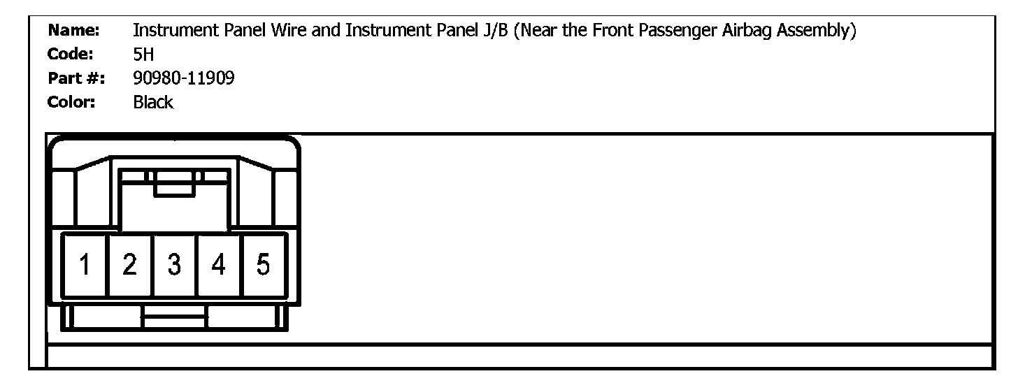 5H (Instrument Panel Wire And Instrument Panel J/B (Near The Front Passenger Airbag Assembly)):