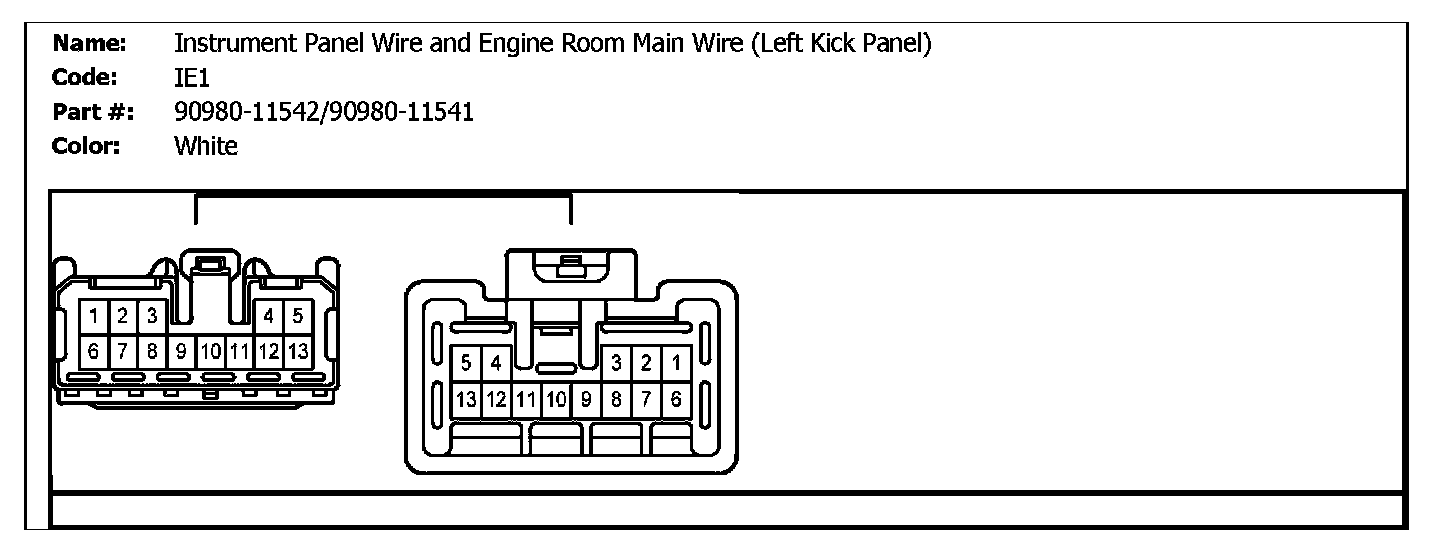 IE1 (Instrument Panel Wire And Engine Room Main Wire (Left Kick Panel)):
