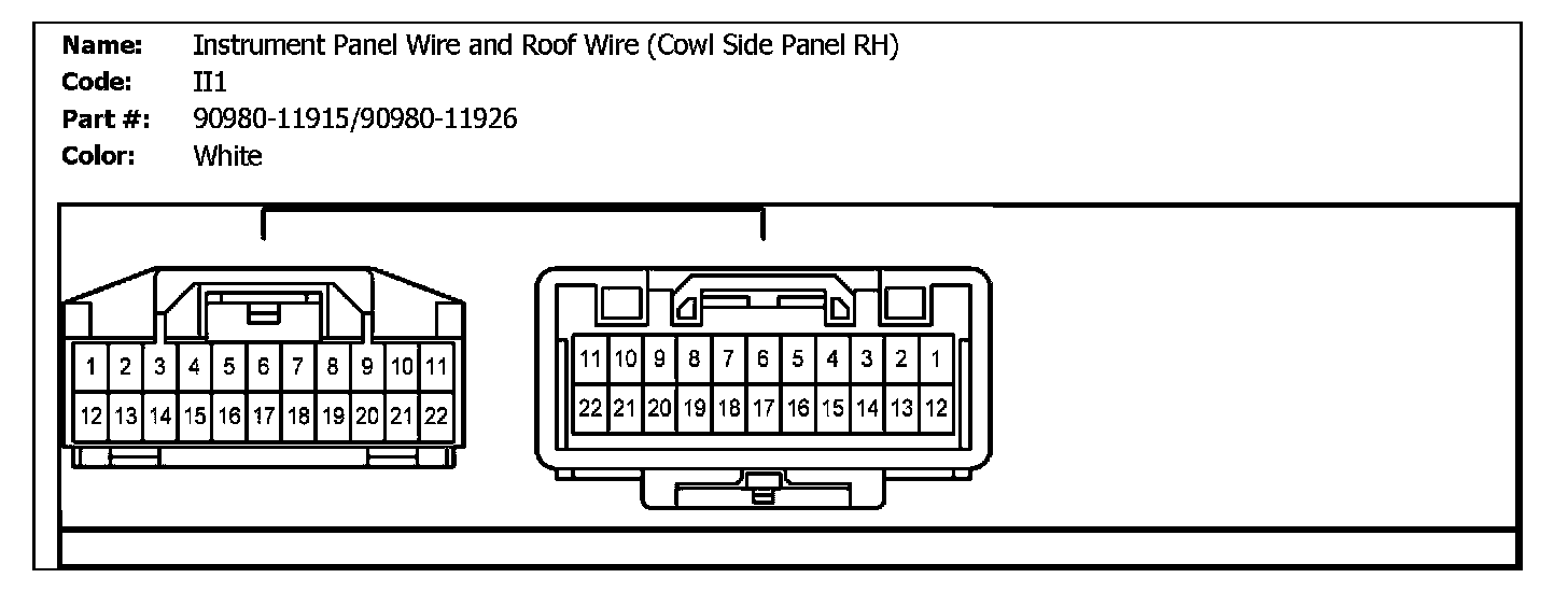 II1 (Instrument Panel Wire And Roof Wire (Cowl Side Panel RH)):