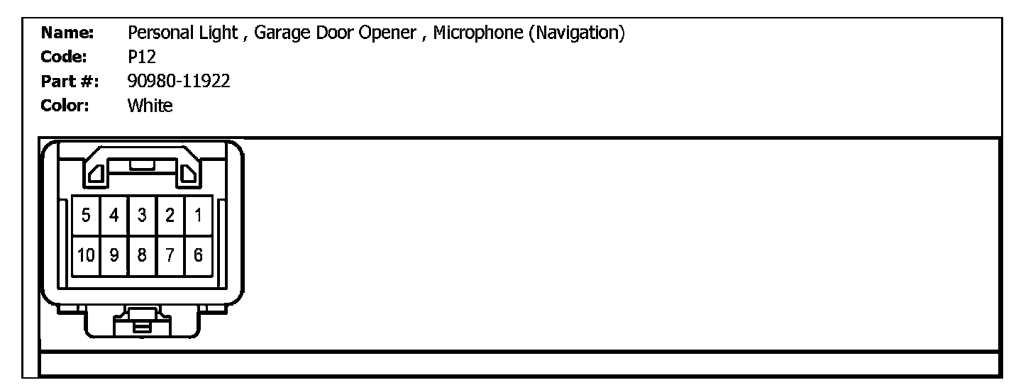 P12 (Personal Light, Garage Door Opener, Microphone (Navigation)):