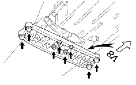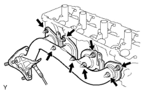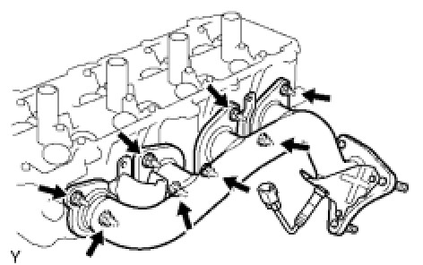 (b) Install the exhaust manifold with 8 new nuts. Uniformly tighten the nuts in several passes.