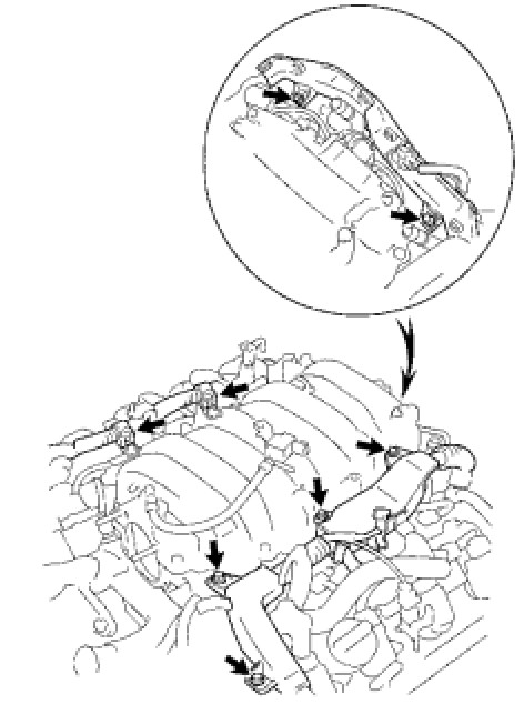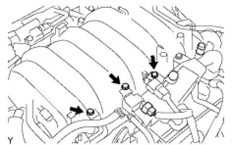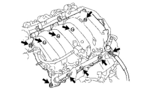 (b) Install the intake manifold assembly with the 6 bolts and 4 nuts.