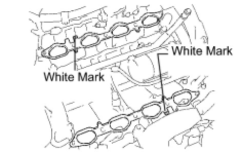 (a) Place a new gasket on the cylinder head with the white mark facing the manifold side.