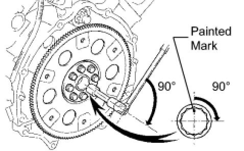(e) Retighten the mounting bolt by 90° in the numerical order shown.