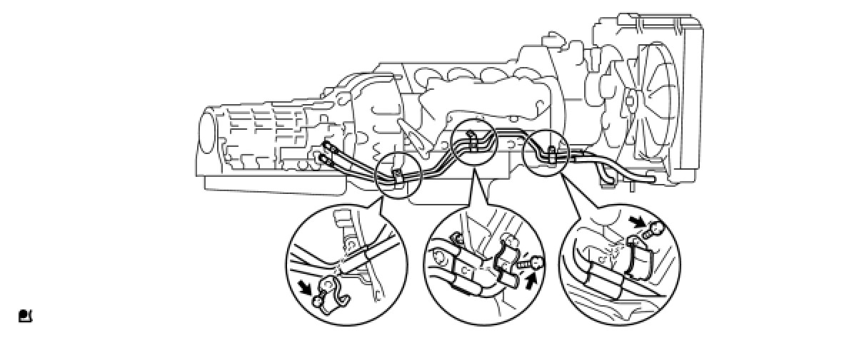 (e) Install the wire clamp to the bracket of the water by-pass pipe.