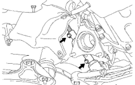 (d) Remove the 2 bolts and nut, and disconnect the vane pump from the engine.