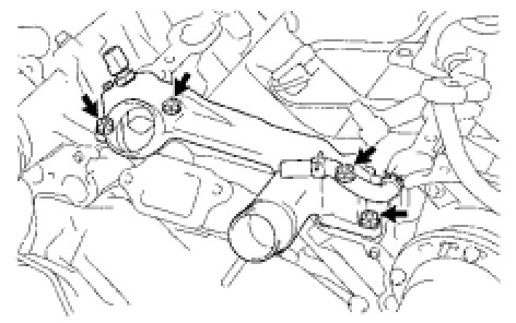 (d) Remove the 4 nuts holding the engine mounting insulator to the front suspension crossmember.