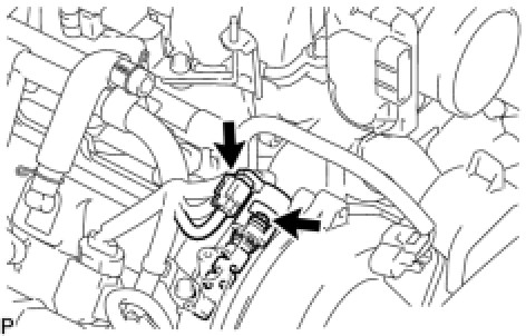 (b) Loosen the 2 hose clamps.
