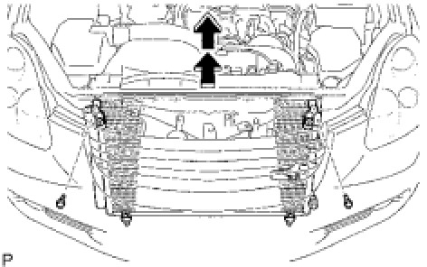 (b) Remove the 2 bolts. Then slide the upper part of the radiator rearward to remove the cooler condenser.