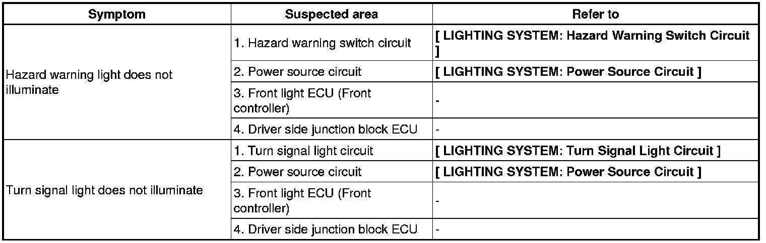 HINT: Use the table below to help determine the cause of the problem symptom. The potential causes of the symptoms are listed in order of probability in the "Suspected area" column of the table. Check each symptom by checking the suspected areas in the order they are listed. Replace parts as necessary.