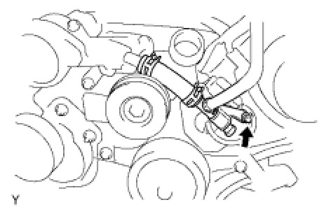 (a) Remove the cap nut and disconnect the No. 3 water by-pass pipe from the timing belt cover.