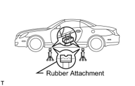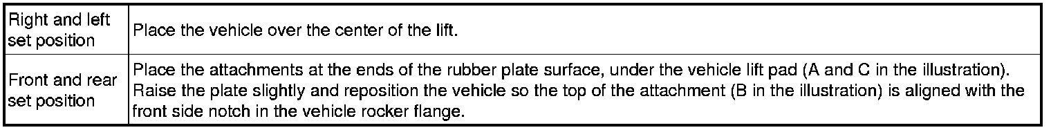 (e) Set the vehicle on the lift as level as possible. Then match the groove of the cradle to the safety stand support locations.
