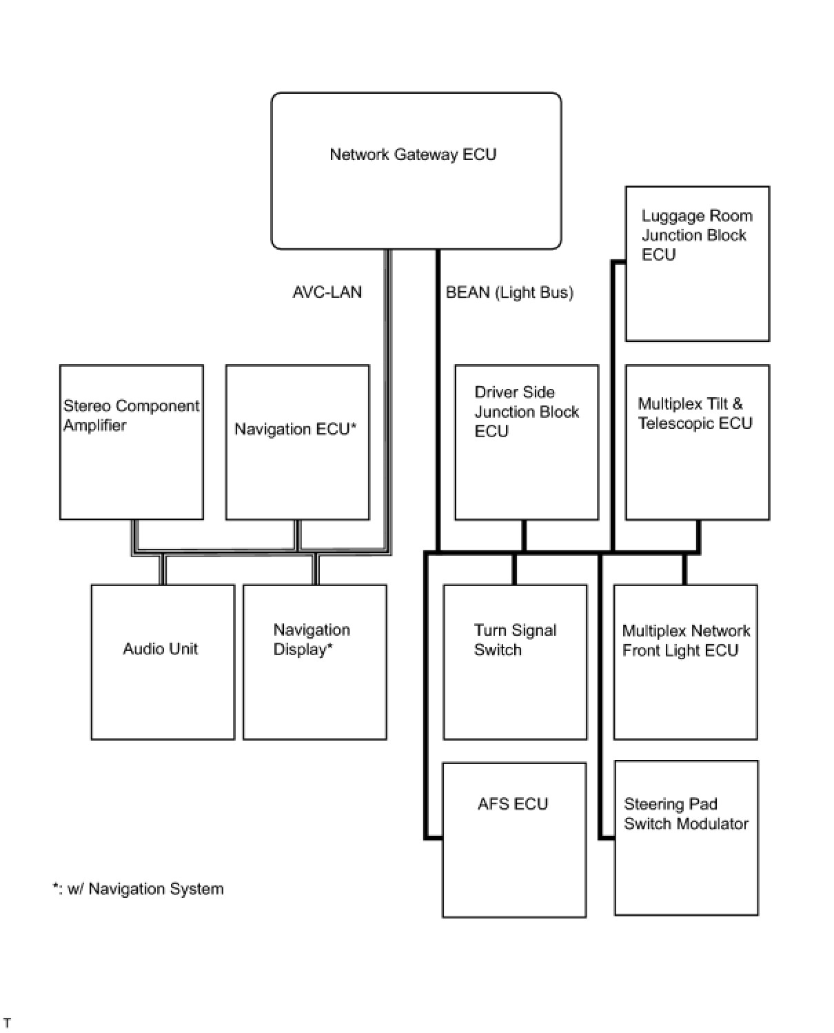 (2) A single, Automobile Vinyl (AV) wire is used for BEAN communication. A twisted-pair wire is used for CAN and AVC-LAN communication.