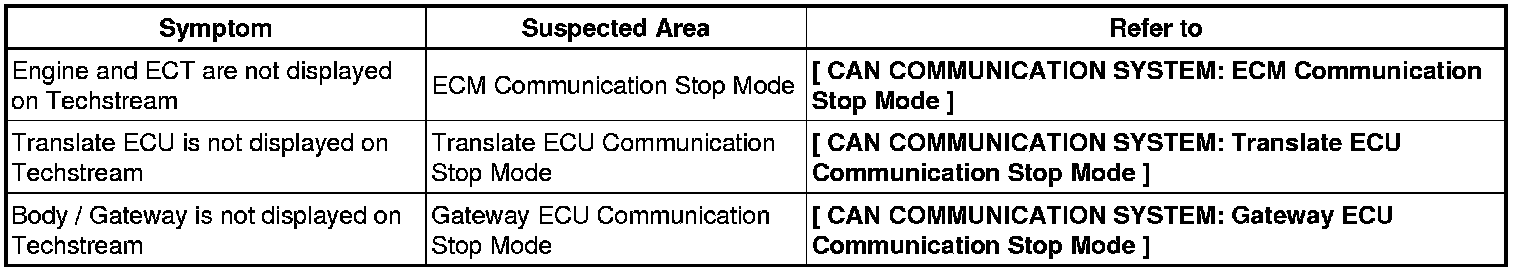 COMMUNICATION STOP MODE TABLE