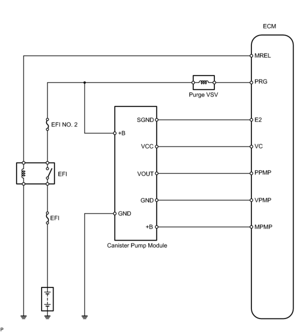 While the engine is running, if a predetermined condition (closed loop, etc.) is met, the purge VSV is opened by the ECM and stored fuel vapors in the canister are purged to the intake manifold. The ECM changes the duty cycle ratio of the purge VSV to control purge flow volume.