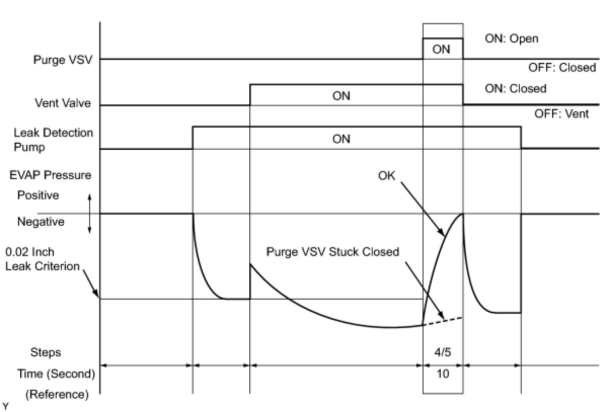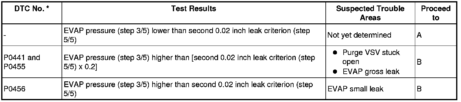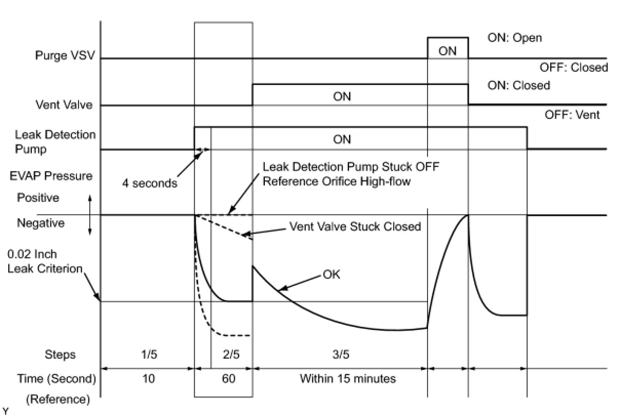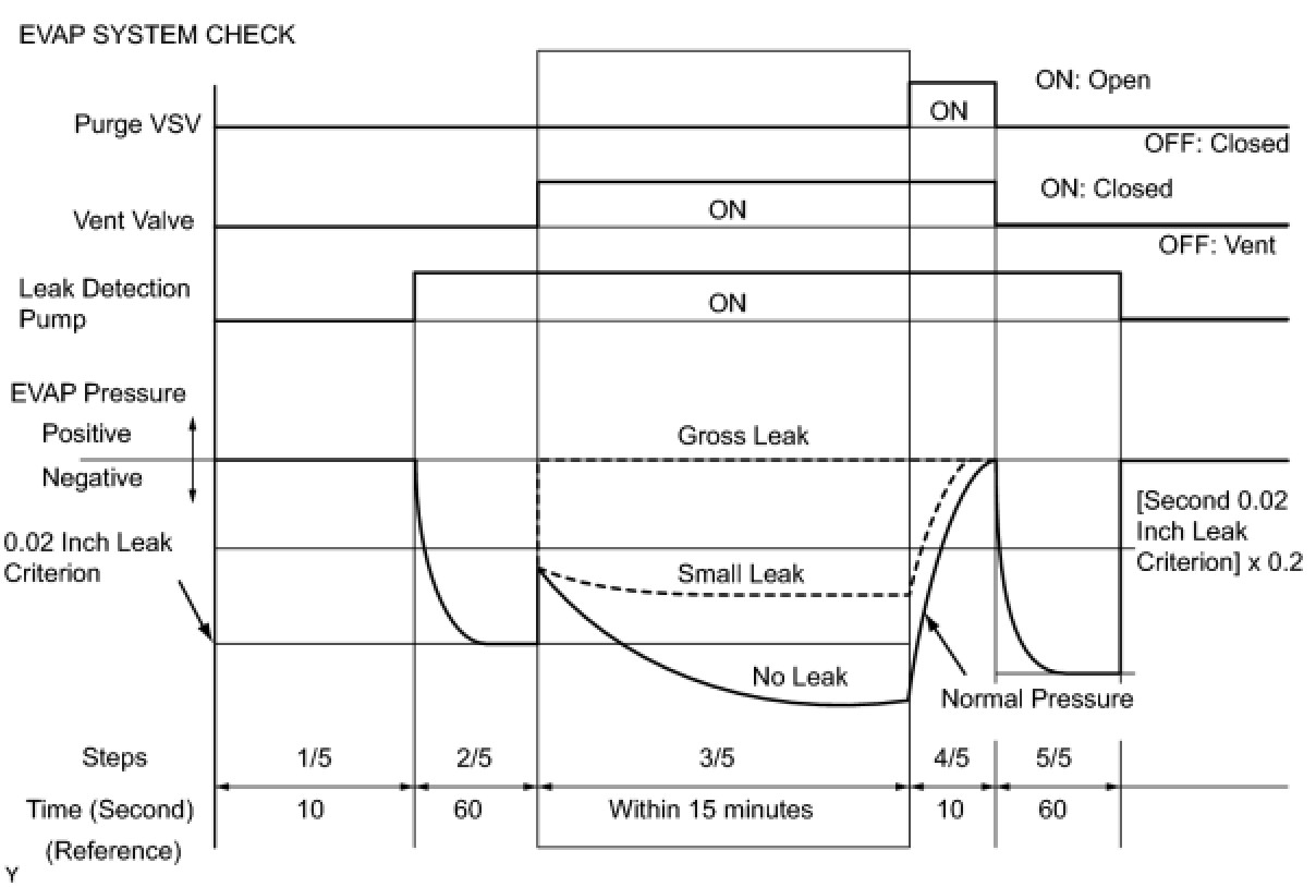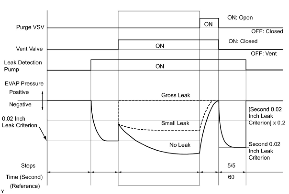 (b) Compare the EVAP pressure in step 3/5 and the second 0.02 inch leak criterion (step 5/5).