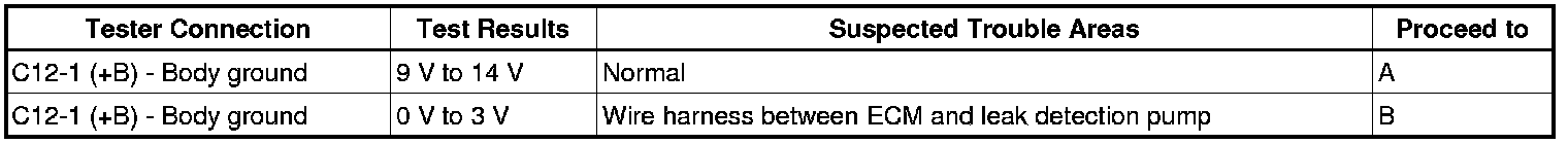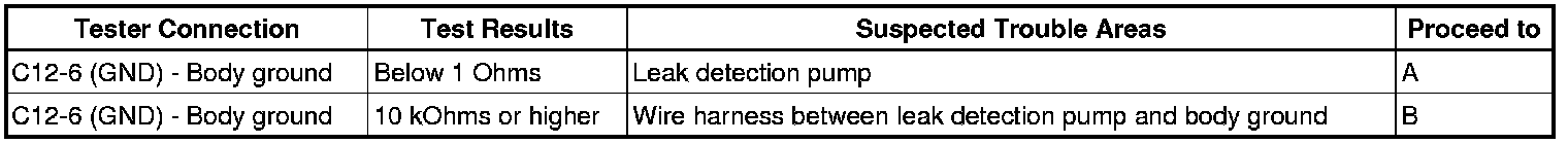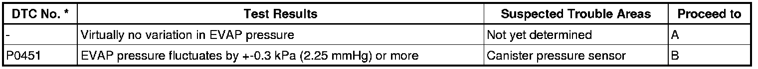 If any EVAP system DTCs are set, the malfunctioning area can be determined using the table below.