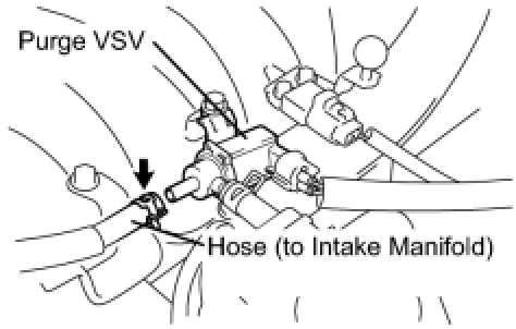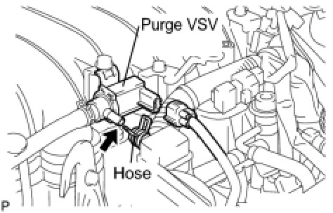 (b) Disconnect the hose (connected to the canister) from the purge VSV.