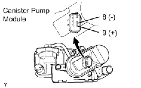 (c) Apply the battery voltage to terminals 9 and 8 of the canister pump module.