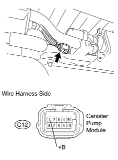 (b) Disconnect the C12 canister pump module connector.
