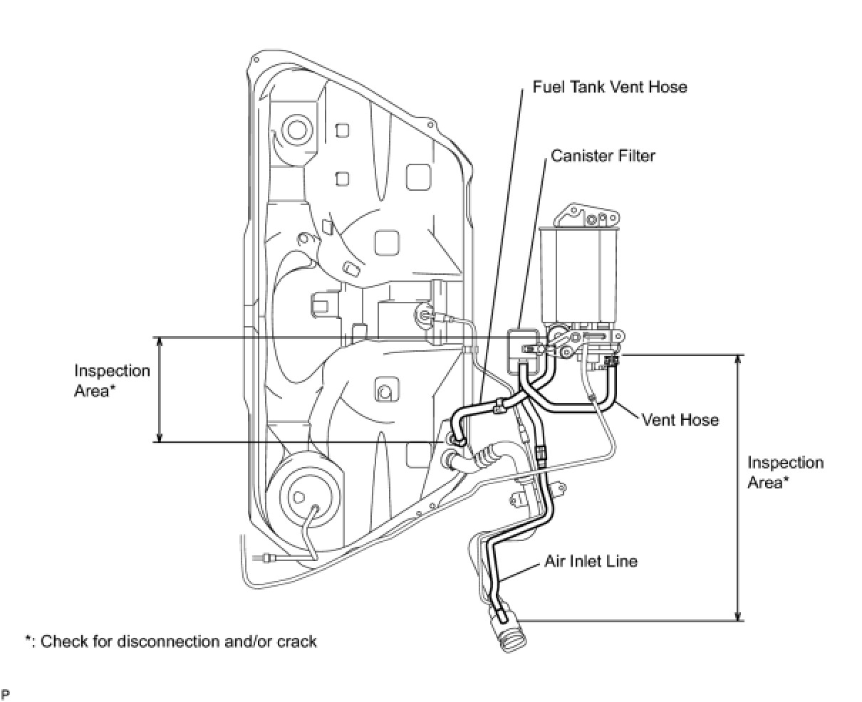 NOTE: When replacing the canister, check the canister pump module interior and related pipes for water, fuel or other liquids. If liquids are present, check for disconnections and/or cracks in the following: 1) the pipe from the air inlet port to the canister pump module; 2) the canister filter; and 3) the fuel tank vent hose.