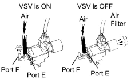 (e) Check the VSV's air flow when switching the VSV.