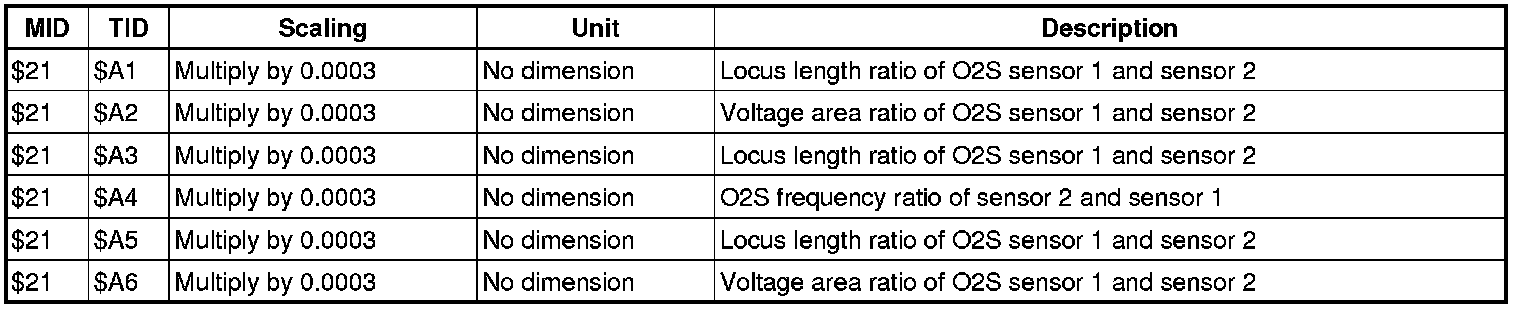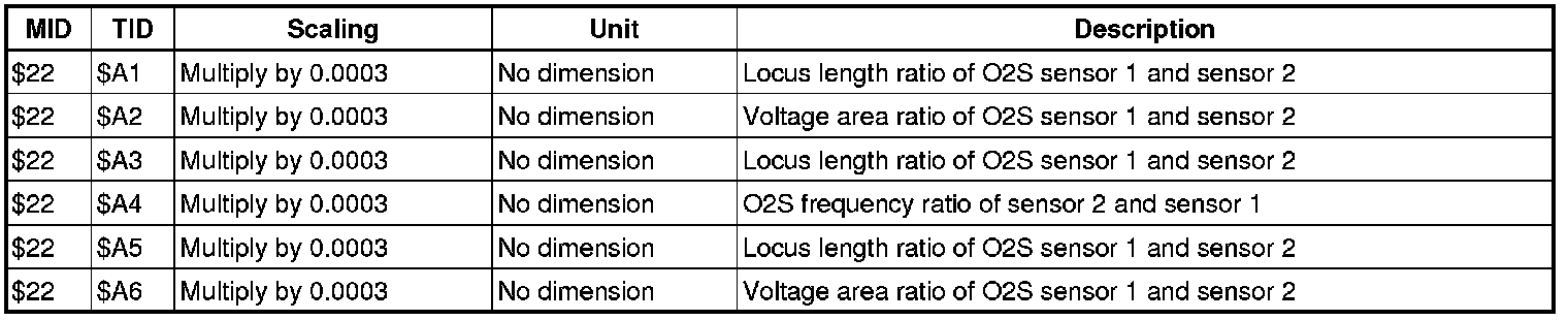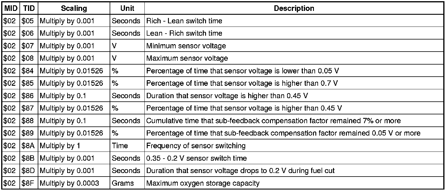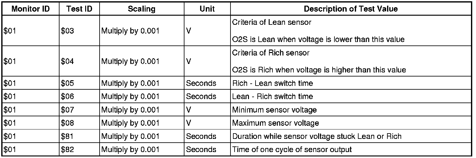 If you use a generic scan tool, multiply the test value by the scaling value listed below.