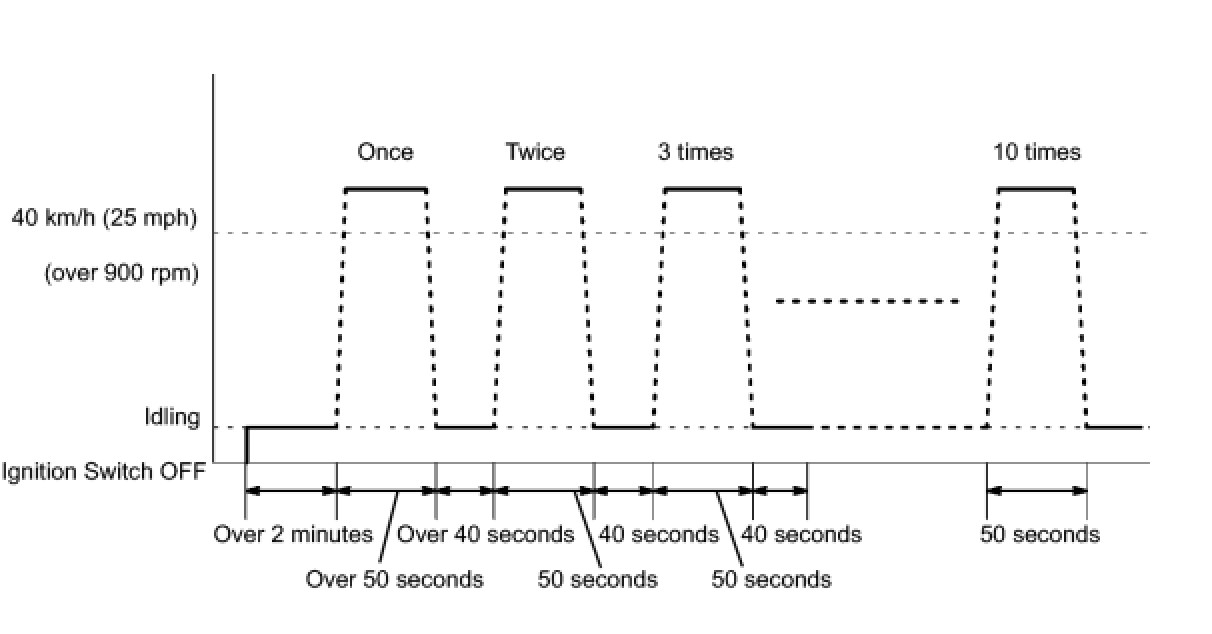 (3) Drive the vehicle at 40 km/h (25 mph) or more for at least 50 seconds.