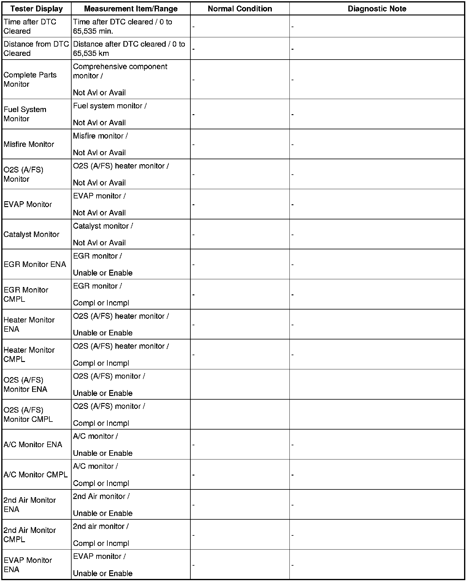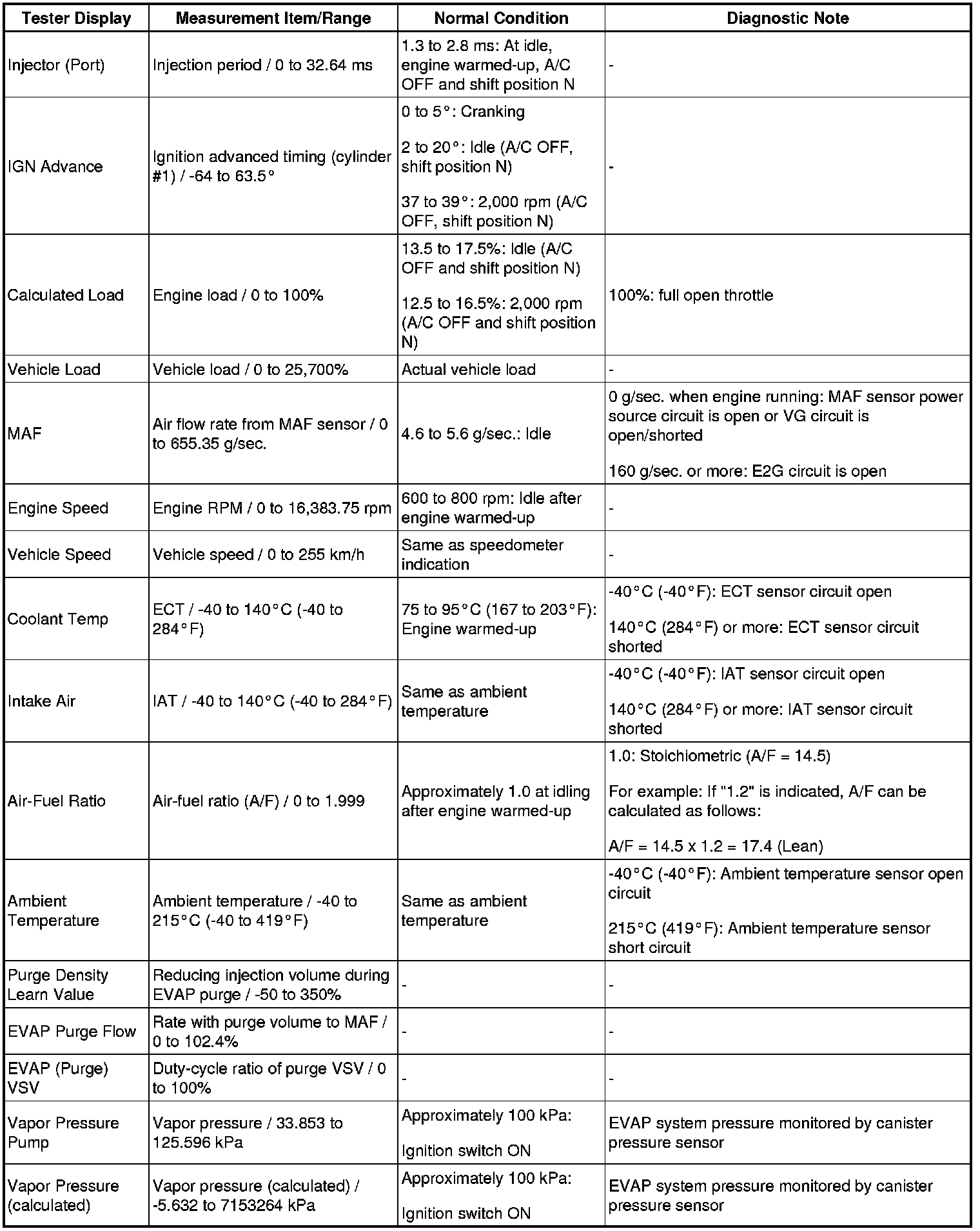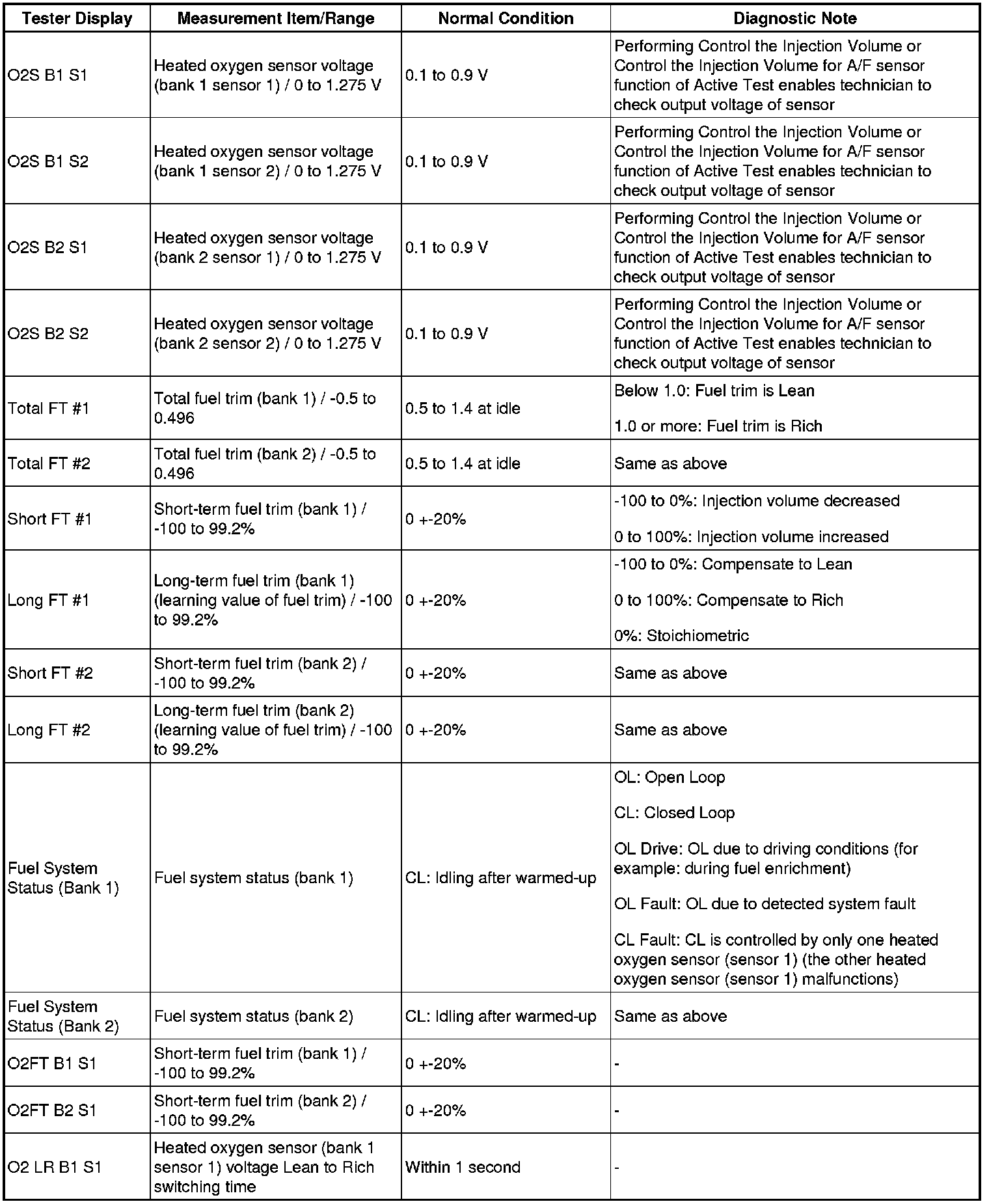 - Normal Condition: If no conditions are specifically stated for "idling", the shift lever is in the N or P position, and the A/C and all accessory switches are OFF.