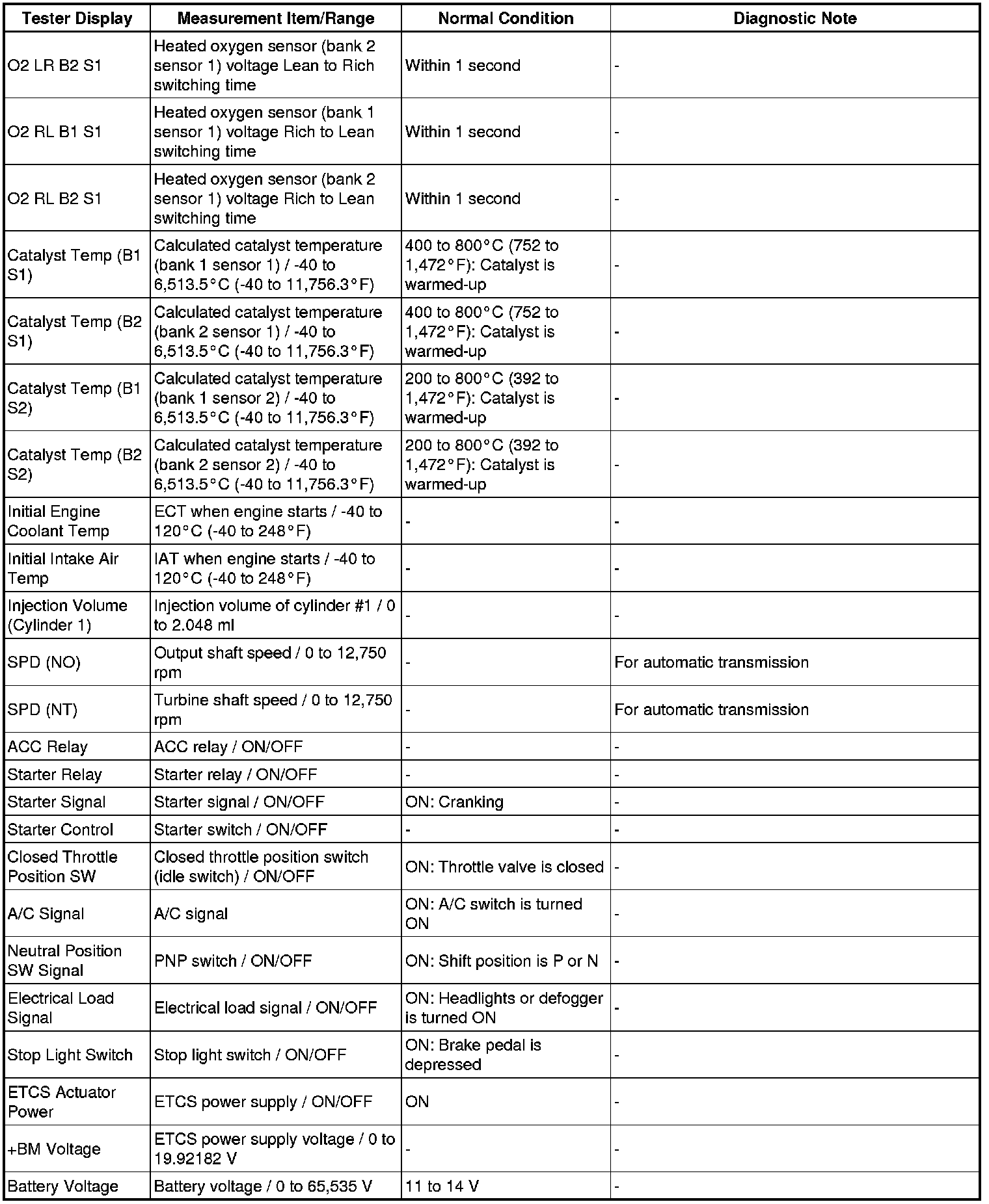 - *: Data List values are only displayed when performing the following Active Tests: Control the VVT Linear (Bank1), Control the VVT Linear (Bank2), Control the VVT Exhaust Linear (Bank1) and Control the VVT Exhaust Linear (Bank2). For other Active Tests, the Data List value will be 0.