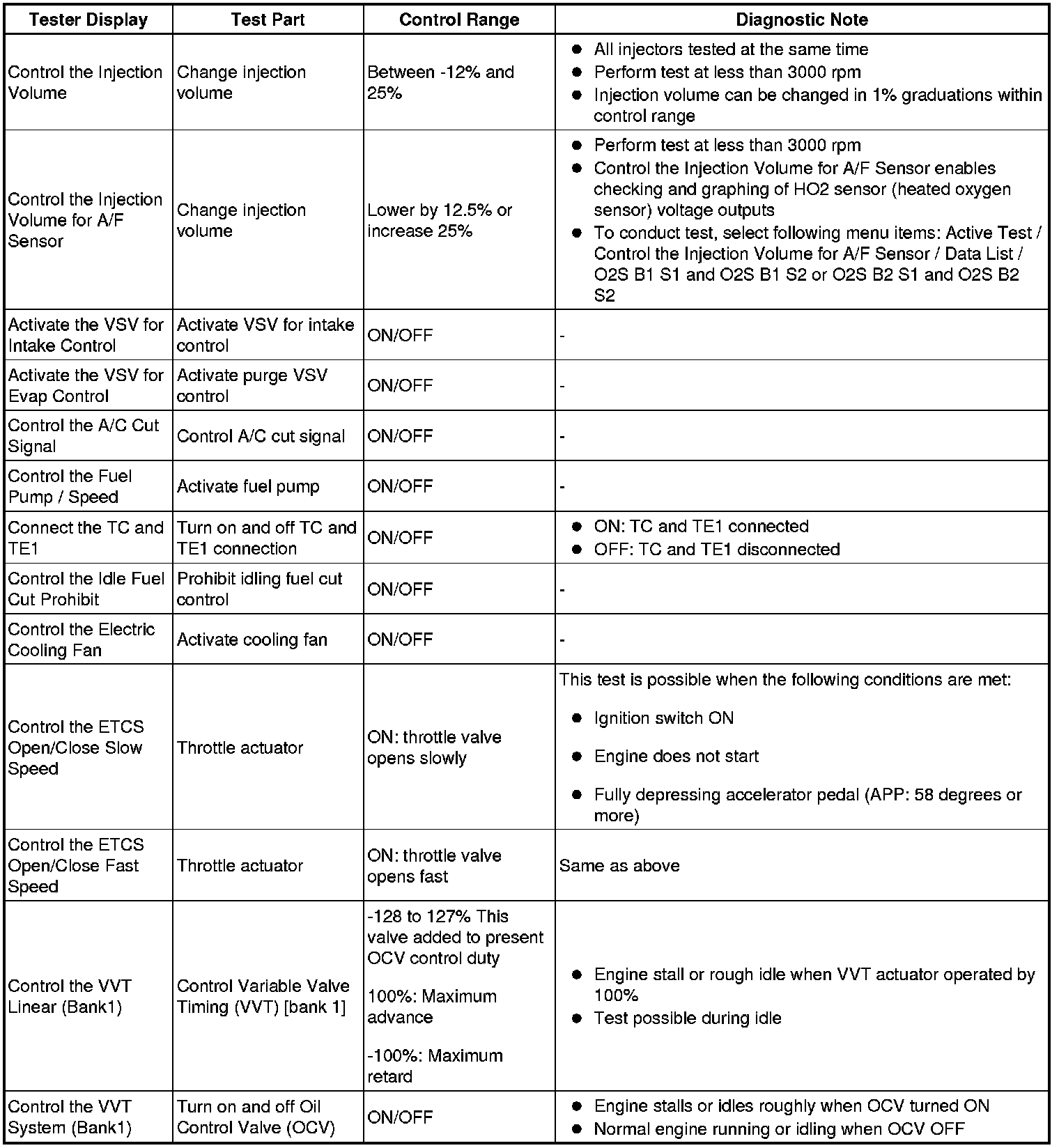 HINT: Performing the Techstream's Active Test allows relay, Vacuum Switching Valve (VSV), actuator and other items to be operated without removing any parts. Performing the Active Test early in troubleshooting is one way to save time. The Data List can be displayed during the Active Test.
