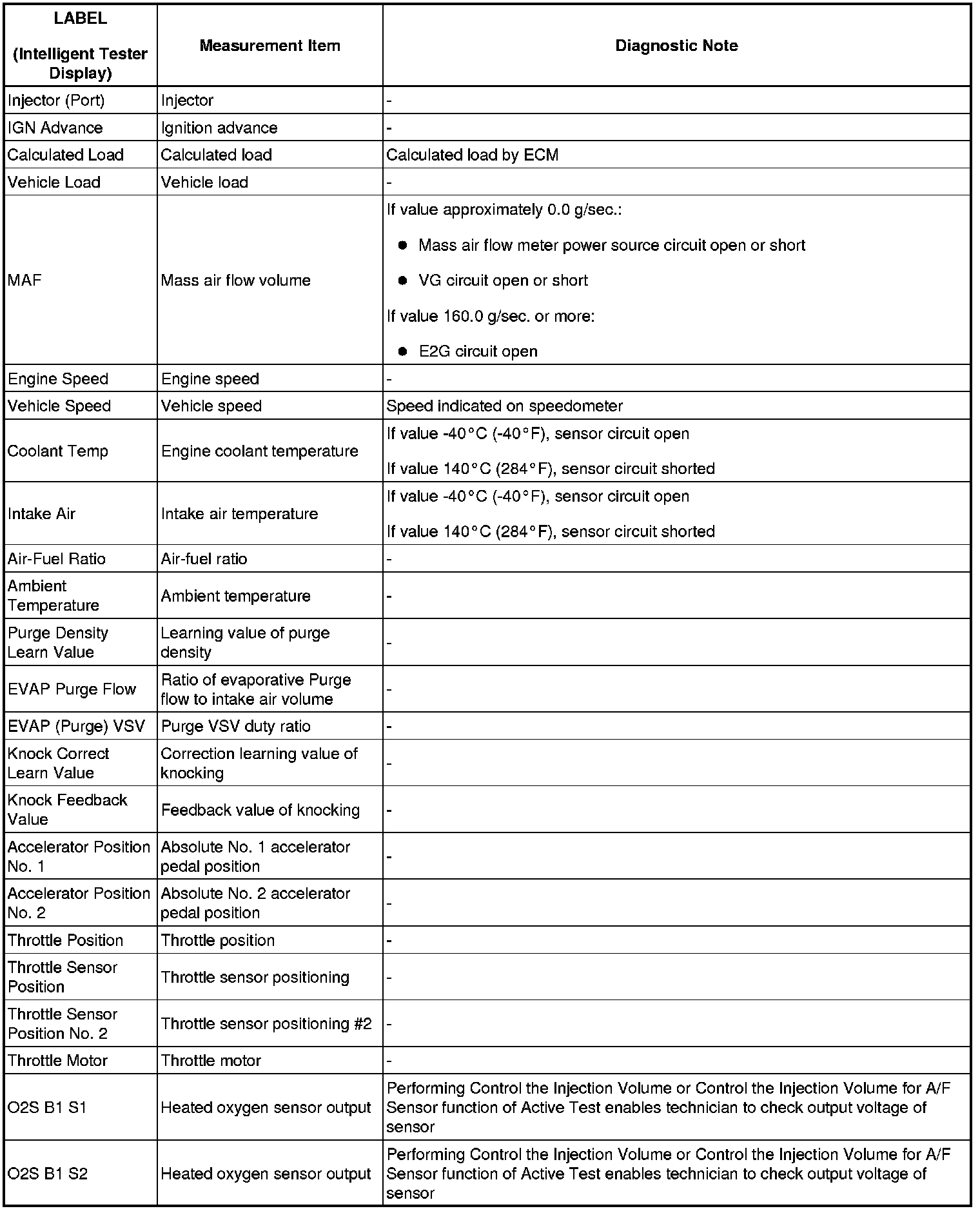 - The ECM records engine conditions in the form of freeze frame data every 0.5 seconds. Using the intelligent tester, 5 separate sets of freeze frame data, including the data values at the time when the DTC was set, can be checked.