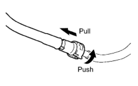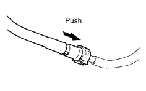 (1) Match the axis of the connector with the axis of the pipe, and push in the connector until the connector makes a "click" sound. If the connection is too tight, apply a small amount of new engine oil on the tip of the pipe.