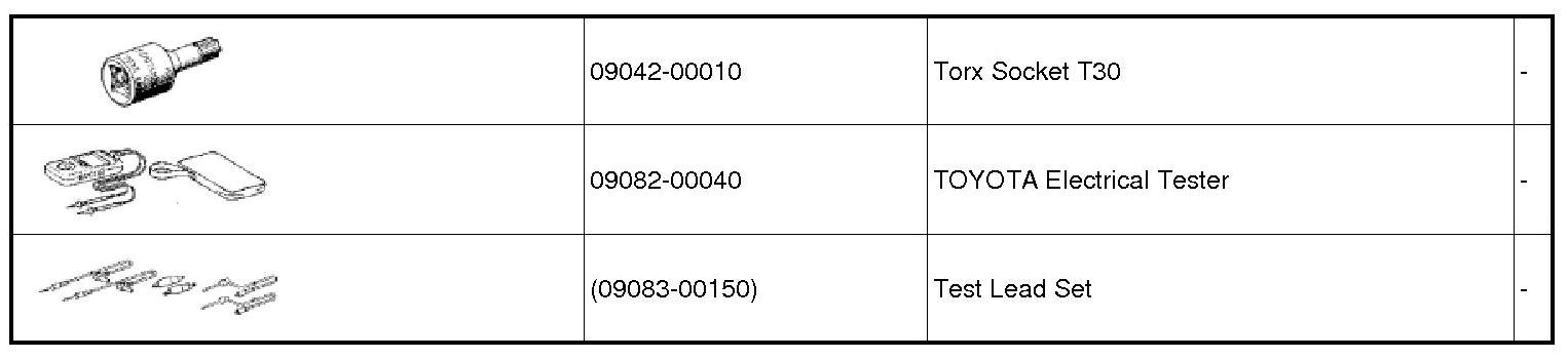 PREPARATION: SUPPLEMENTAL RESTRAINT SYSTEM: RECOMMENDED TOOLS