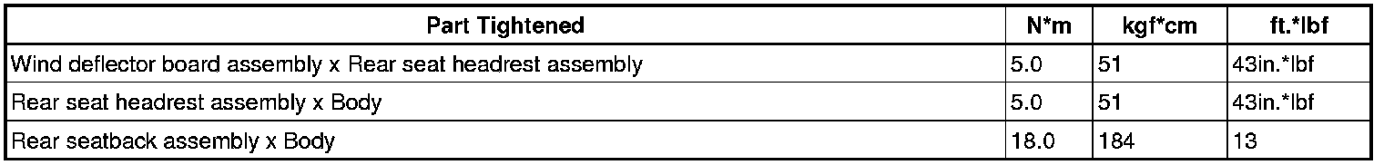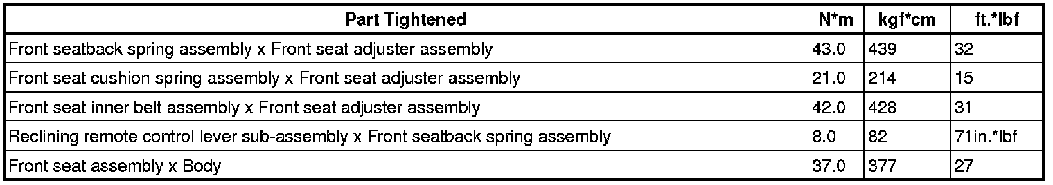 SERVICE SPECIFICATIONS: SEAT: TORQUE SPECIFICATIONS