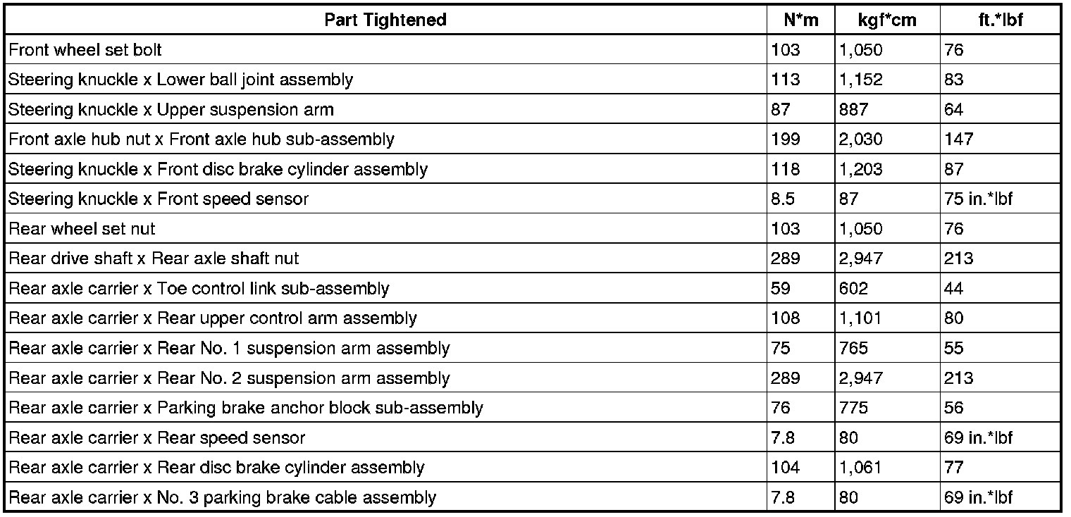 SERVICE SPECIFICATIONS: AXLE: TORQUE SPECIFICATIONS