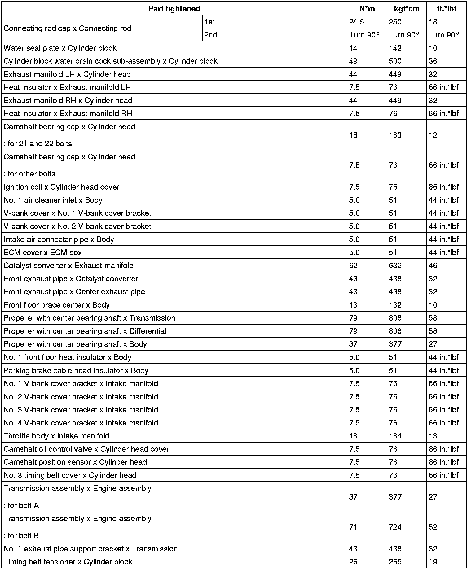 SERVICE SPECIFICATIONS: 3UZ-FE ENGINE MECHANICAL: TORQUE SPECIFICATIONS