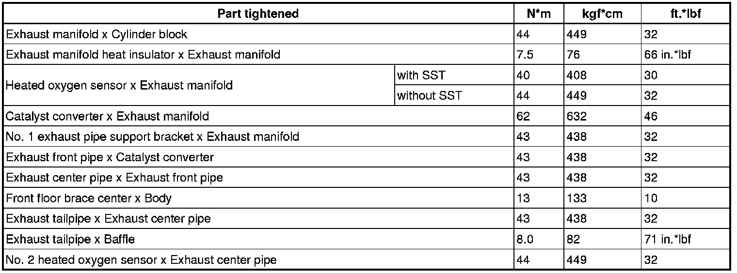 SERVICE SPECIFICATIONS: 3UZ-FE EXHAUST: TORQUE SPECIFICATIONS