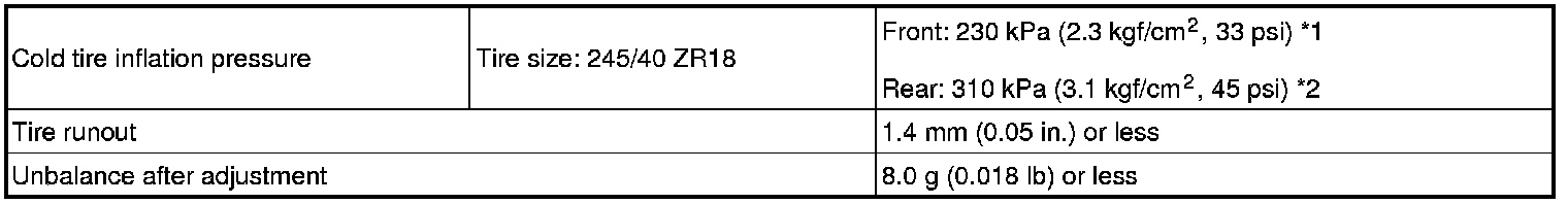 SERVICE SPECIFICATIONS: TIRE AND WHEEL: SERVICE DATA