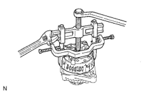 (e) To loosen the pulley nut, turn SST (A) in the direction shown in the illustration.
