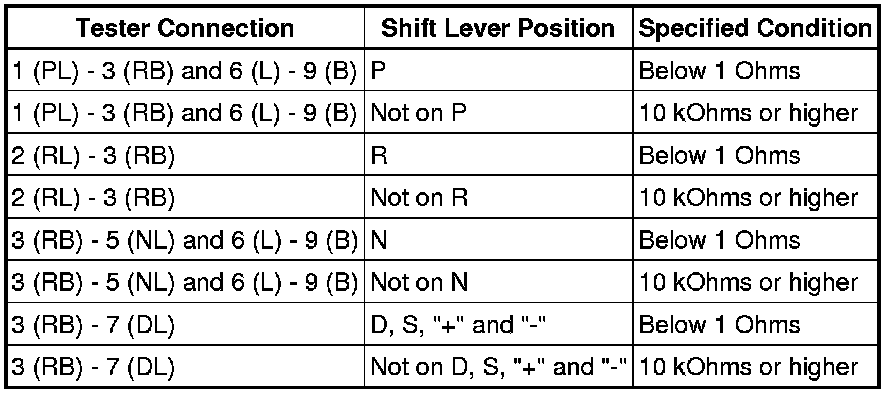 (a) Measure the resistance of the park/neutral position switch when the shift lever is moved to each position.