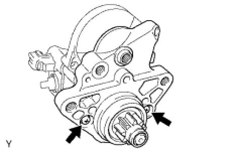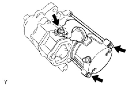 (c) Remove the 2 bolts, and pull out the starter yoke (with armature) from the magnetic switch.