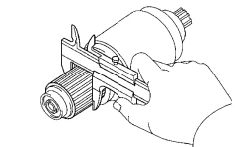 (4) Check that the starter rotates smoothly and steadily while the pinion gear is moving outward. Then measure the current.